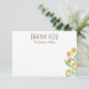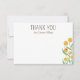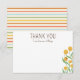 Sned a message of thanks after birthday parties or special events with this nature inspired flat stationery featuring easy to edit text. Change the "thank you" headline to a message of your choice and edit the name text for a truly one-of-a-kind gift. Charming illustrated, yellow, billy ball craspedia flowers bloom on the front with a small ladybug detail while the back side features a colourful rainbow stripe of retro inspired and gender neutral colours like mint green, sky blue, rust, golden yellow and coral red on a creamy background.