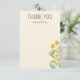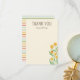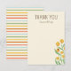 Sned a message of thanks after birthday parties or special events with this nature inspired flat stationery featuring easy to edit text. Change the "thank you" headline to a message of your choice and edit the name text for a truly one-of-a-kind gift. Charming illustrated, yellow, bill ball craspedia flowers bloom on the front with a small ladybug detail while the back features a colourful rainbow stripe of retro inspired and gender neutral colours like mint green, sky blue, rust, golden yellow and coral red on a creamy background.