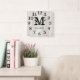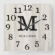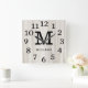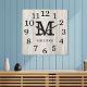 Natural Wood Large Numbers Family Name Monogram Square Wall Clock