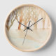 The natural wooden wall clock is designed in soft brown shades of winter trees. It is sunrise and the light is filtering through the leafless trees creating a feeling of warmth. This is a unique design created by me on watercolor paper with watercolor paints. The natural wooden clock will blend in with all color schemes and will be a welcome gift. A gift could be a thank you to your babysitter, schoolteacher, or favorite librarian.