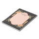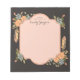 A pattern of whimsical florals, Autumn leaves and pheasant feathers in seasonal shades of apricot, pumpkin and dusty blue adorn this pretty notepad that's personalised with your name on each sheet. Shown with a contrasting mocha brown background that gives it a feminine and modern vintage look, but can easily be changed to suit your taste. Perfect for writing notes to school, making to-do lists, or leaving love notes.
