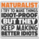 Funny Naturalist Sayings "Naturalist I Try To Make Things Idiot Proof But They Keep Making Better Idiots". Grab this Funny Naturalist design as a funny gifts for an awesome mum, dad or friend.