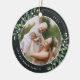 This holiday season, commemorate a special year with this elegant personalised photo Christmas ornament. Graceful sprigs of forest green painted watercolor mistletoe frame your photo, with your name and the year curving around. Add a second photo to the reverse side.