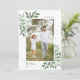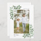 Send holiday greetings to friends and family in chic style with our elegant Christmas photo cards. Graceful sprigs of dark green watercolor mistletoe frame your photo, with your custom greeting (shown with "love and joy") at the top and your family name(s) at the bottom. Add three additional photos and a personal message to the back.