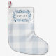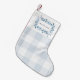 Rustic chic stocking features a subtle, tonal buffalo plaid check pattern with your name at the top, bordered by delicate ice blue watercolor botanical foliage. Designed to match our Naturally Joyful holiday collection.
