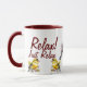 Just Relax Modern Mug. Home and Living . Kitchen and Dining. Typography with BIRDS. Sometimes Minds are racing concerning everything we must do. This morning Tea or Coffee Mug reminds us its Ok., To a moment for ourselves.