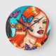 Nature Girl Butterflies original fantasy art Canva Round Clock