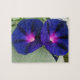 Image on 8" x 10" photo puzzle consists of twin deep pink-purple Morning Glory wildflowers and a green, leafy background.