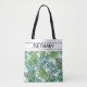 Create a custom personalised stylish tote bag with a nature leaf design in green and white. Design created with creative commons image from pixabay.