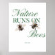 Impactful 'Nature Runs On Bees' design with realistic bumblebees and elegant green typography on a black background. A powerful eco-statement for conservationists and nature lovers. ESTD 2030. Celebrate the heart of our ecosystem with this 'Nature Runs On Bees' design. Featuring two high-detail, realistic bumblebee illustrations paired with elegant forest green typography, this piece blends a vintage scientific aesthetic with a modern environmental message. Perfect for science teachers, environmental activists, and garden lovers, this design highlights the vital role bees play in our world.