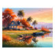 Nature Sunset Painting with Lake, Cottage