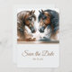 Do you share a love for horses? Consider this wedding save the date card. The unique front features beautiful horses. Your save the date details are on the back of the card. A nature orientated wedding save the date card with brown and earth tone colours. Change the text to suit your needs. Use the template to create your own nature horse wedding save the date.