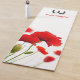Yoga carpet with red poppy flowers in the background on a white background with your company logo and an advertising slogan.