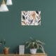 This print features a modern art abstract image of several botanicals in neutral shades of muted tan or beige and grey on a white background. This pretty poster has a boho chic aesthetic and will provide a touch of nature and sophistication to a living room, bedroom or bathroom. This unframed print is available in various sizes to fit standard frames.