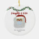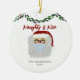 Brighten up someone's holiday with this Naughty And Nice Funny Santa Family Christmas Ceramic Ornament. It is modern designed with a cute Santa face wearing a face mask. The text is "naughty and nice" in red trendy hand script lettering. A green and red holly vine is draped above