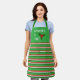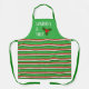Naughty and nice typography with a holly sprig looks fun and festive on this striped Christmas apron in vivid green. Red, white and green stripes in candy cane colours.