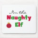 Naughty Elf T-shirts, cards, mousepads, magnets, tote bags, and other items with red and green text with a holiday Christmas ornament hanging from the text. If you're looking for a fun, humourous holiday T-shirt or other item this is perfect!