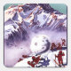 Naughty Gnomes Making Giant Snowball Poster Square Sticker