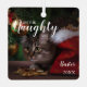 On the naughty list Christmas pet photo holiday ornament. Photo template via Pixabay licensed under CC0 and must be replaced with your own photo