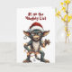 Greet friends and family this Christmas with this humourous gremin who proudly proclaims his place on Santa's naughty list.