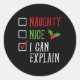 Naughty Nice I Can Explain Funny Christmas List Classic Round Sticker