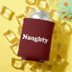 Naughty or Nice, maroon white funny Can Cooler