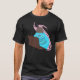 I give wanted to give this a 4 instead of a 5 because these Basic DARK T0shirts run unexpectedly SLIM or Narrow. Which is great if you do not have a potbelly, but I have a paunch. It isn't the shirt's fault that I've got a beer belly. The design and shirt itself is a quality cotton shirt. The color is more of a deep purple, but still a very pretty color. The Basic DARK T-shirts run a bit SLIMMER than the Basic Ts. The neck is a fraction narrower (or seems to be narrower) also. I'm a paunchy middle-aged woman and my neck is 12 inches (31cm) thick and the neckline fell about the same as in the photo of the man, and I had the desire to tug it a bit. So if you're a thick necked man or like loose shirts, be aware these are slimmer shirts. Once I get rid of my lockdown paunch it'll look great. The shirt washed well in cold water with no apparent bleeding. We don't have a dryer, so it hung dry. Did not shrink. Love the colors and the design. The design looks smaller on my shirt than it does on the model on-line. But still, it looks good on the shirt. The printing looks as it does on the model, just the size seems fractionally smaller. Washed garment in cold water, hung dry and design appeared unaffected.