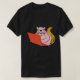 I give wanted to give this a 4 instead of a 5 because these Basic DARK T0shirts run unexpectedly SLIM or Narrow. Which is great if you do not have a potbelly, but I have a paunch. It isn't the shirt's fault that I've got a beer belly. The design and shirt itself is a quality cotton shirt. The color is more of a deep purple, but still a very pretty color. The Basic DARK T-shirts run a bit SLIMMER than the Basic Ts. The neck is a fraction narrower (or seems to be narrower) also. I'm a paunchy middle-aged woman and my neck is 12 inches (31cm) thick and the neckline fell about the same as in the photo of the man, and I had the desire to tug it a bit. So if you're a thick necked man or like loose shirts, be aware these are slimmer shirts. Once I get rid of my lockdown paunch it'll look great. The shirt washed well in cold water with no apparent bleeding. We don't have a dryer, so it hung dry. Did not shrink. Love the colors and the design. The design looks smaller on my shirt than it does on the model on-line. But still, it looks good on the shirt. The printing looks as it does on the model, just the size seems fractionally smaller. Washed garment in cold water, hung dry and design appeared unaffected.