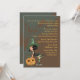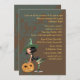 Invite your friends with this fun invitation and let them know that this naughty little witch has a fun party planned, they should put on their costume and plan to attend. A glamourous witch dressed in green and black rests on a jack-o-latern against a grunge backgrounds.