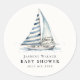 Nauti-Bouy Blue Stripe Sailboat Baby Shower Classic Round Sticker