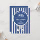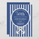 A navy blue nautical birthday party invitation for a guy featuring an anchor and navy and white striped background .