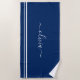 Nautical Add Name Script Navy Blue Striped Beach Towel