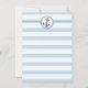 This boy's baby shower invitation features an anchor and rope on a light blue frame with a thin navy blue border. The background is a light blue and white stripe pattern. It's ready to be personalised and is suitable for a boy's baby shower.