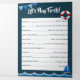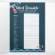 A cute and adorable design of a ship sailing on the sea with a lighthouse shining brightly above it. The inside has illustrations of life rings, blue bunting flag, yachts, shells and the sea all set against a classic blue background. The outside flap thanks your guests for joining you and the inside has three fun games to play - baby bingo, word scramble and let's play firsts