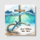 A wooden cross rises above turbulent ocean waves, symbolising stability and faith amidst chaos for a funeral or memorial service.