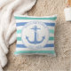 Brighten up your outdoor living space with this nautical themed pillow. This design features a background of seafoam green aqua, medium blue and white stripes with a circular blue anchor design in the centre bordered by a rope. Above the anchor is your family name and below the year established for you to personalise. We hope you enjoy this colour choice for a more modern appearance!