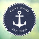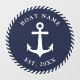 Nautical Anchor Boat Name Navy Blue & White Round Window Cling