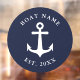 Nautical Anchor Boat Name Navy White Simple Round Window Cling