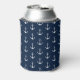 Nautical anchor dark navy blue and white pattern modern elegant cute can cooler.