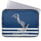 Nautical Anchor Dolphin Navy Blue Stripes Sailor Laptop Sleeve