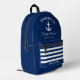 Nautical Anchor Family Reunion Navy Blue Striped Printed Backpack