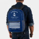 Nautical Anchor Family Reunion Navy Blue and White Striped Backpack