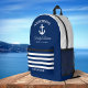 Nautical Anchor Family Reunion Navy Blue and White Striped Backpack