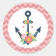 Nautical Anchor Floral Baby Girl Shower Party Classic Round Sticker
