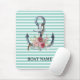 Nautical,Anchor Flowers Mint Green Stripes Mouse Mat