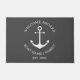Custom Boat name or Family name, Welcome Aboard, nautical white anchor. white letters, dark charcoal grey Doormat.