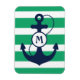 Kelly green nautical stripes with navy blue anchor and monogram.