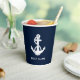 Nautical Anchor Navy Blue and White Boat Name Paper Cups