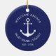 Custom Boat name or Family name, Welcome Aboard, nautical anchor navy blue and white Christmas Ceramic Ornament.