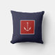 Nautical anchor throw pillow. Navy blue with a white anchor in a red square..
